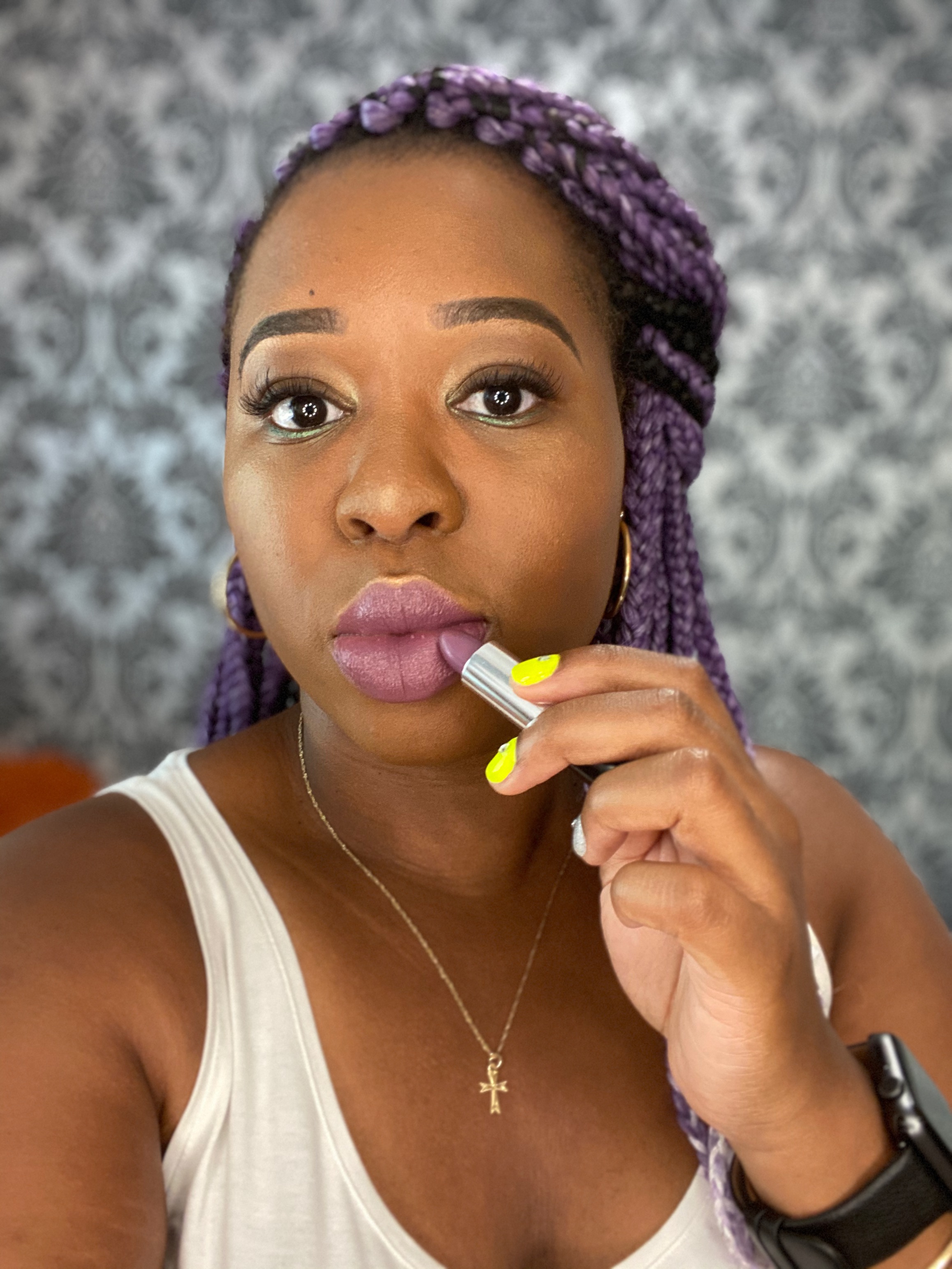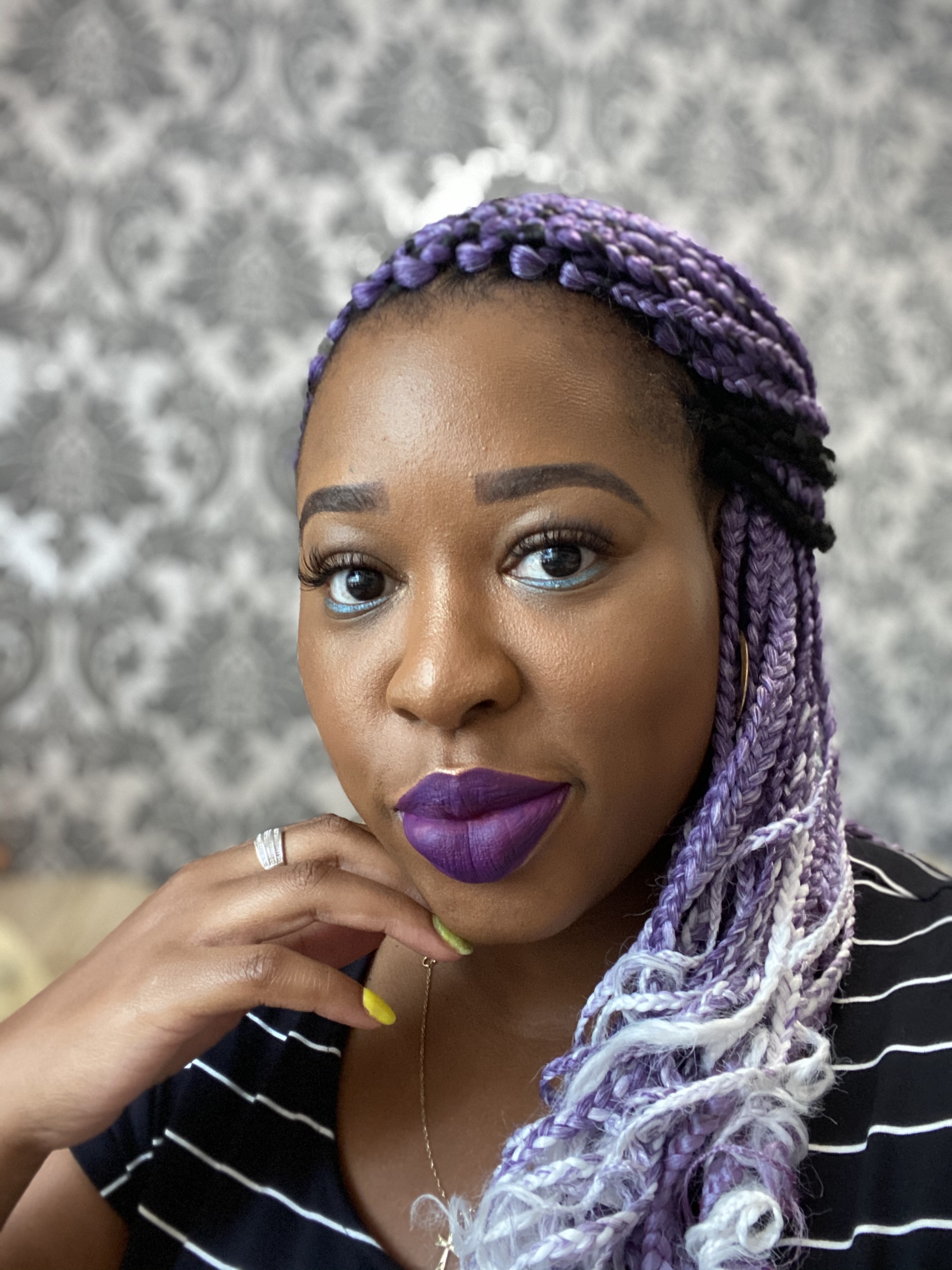 2. Dark purple! Royal Purple! Kind of sort of purple! I love, love, love purple anything on People of Colour. I have yet to see anyone wear it wrong. It’s so royal that it just looks great on all of us. I got Heroin by Mac and LM 04 from BlackUp and both are pigmented rich purples, not lilac or lavender, just straight purple. The one from MAC is a lipstick, while the one from BlackUp is a liquid lipgloss. Both have a blue undertone and last all day, giving me life! Mama wasn’t ready the first time, but I think she almost expects me to wear purple somewhere on my face now.